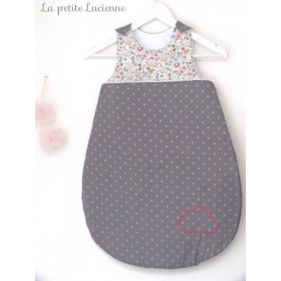 Gigoteuse en liberty Betsy porcelaine et popeline de coton grise à pois argenté. Cette création est réalisée sur mesure, je vous remercie de me contacter si vous souhaitez la commander.