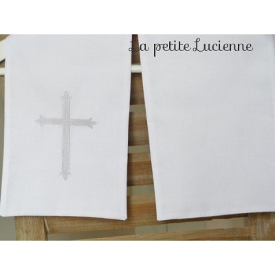 Linge blanc de baptême, étole de baptême avec croix brodée UNIQUEMENT (modèle F)