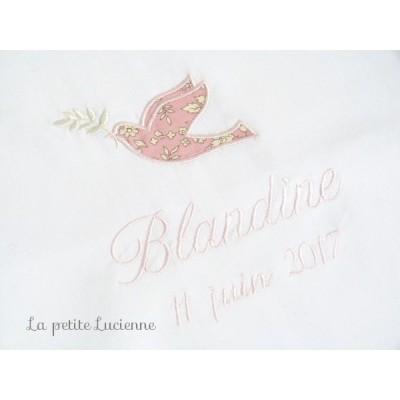 Echarpe de baptême personnalisée avec une colombe brodée (modele J)