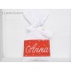 Les pochons brodés sont joliment accompagnés d'une étiquette festonnée et d'un joli noeud en satin blanc.