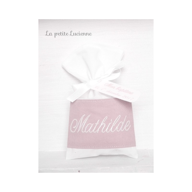 Pochon de baptême VIEUX ROSE brodé avec le prénom de votre enfant