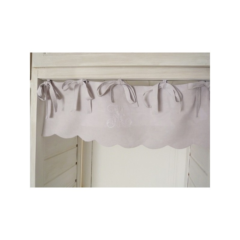 3 dimensions proposées: largeur 80cm, 60cm et 45cm. Si vous souhaitez une lettre ou monogramme brodé différent n'hésitez pas à nous contacter. Nous pouvons également confectionner cette cantonnière à vos mesures