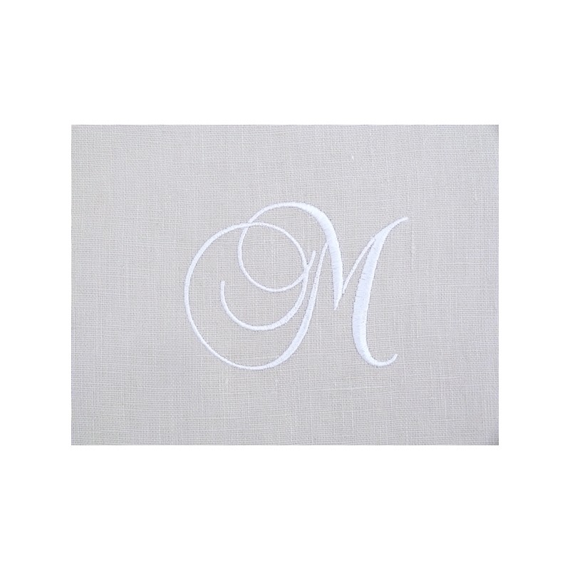brodé sur un COUPON EN LIN GRIS PERLE 18 CM * 22 CM